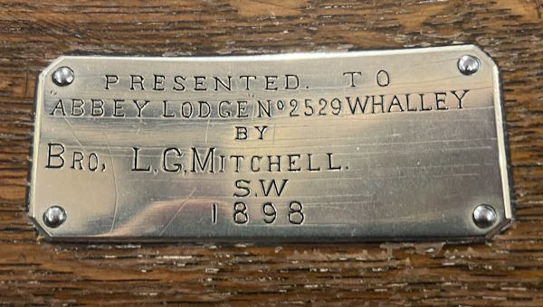 Chair 1898 presentation plaque - Bro L G Mitchell